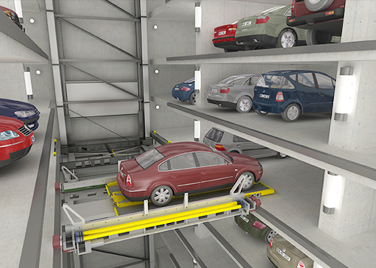 既具有塔式車庫(kù)存取車速度快的特點(diǎn),同時(shí)和塔式車庫(kù)相比又有造價(jià)經(jīng)濟(jì),車位數(shù)量多等特點(diǎn)